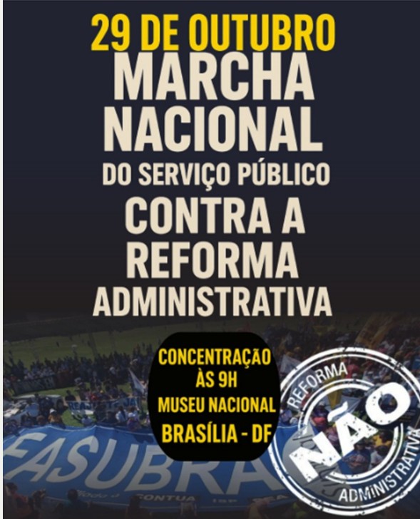 No dia 29, servidores de todo país tomarão Brasília em defesa dos direitos e do serviço público. A mobilização – Marcha Nacional do Serviço Público contra a Reforma Administrativa -, é parte da luta nacional das servidoras e servidores públicos contra a proposta de Reforma Administrativa do Congresso, que ameaça direitos históricos da categoria e os serviços prestados à população.